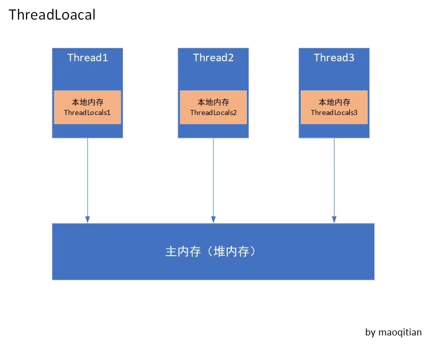 Thread类有一个类型为ThreadLocal.ThreadLocalMap的成员变量threadLocals,如果你了解Java内存结构,threadLocals的值都是new出来的话,很容易明白threadLocals是存放在堆内存中的,而每一个线程只是在堆内存中存放了自己的threadLocals,也就是每个线程本地内存(逻辑上),物理上本地内存只是在堆内存中占有一块区域,每个线程只玩自己对应的threadLocals,各个线程的对应ThreadLocal互不干扰,这也就实现了各个线程间数据的隔离,也就是每个Handler所在线程都有其对应的Looper对象。