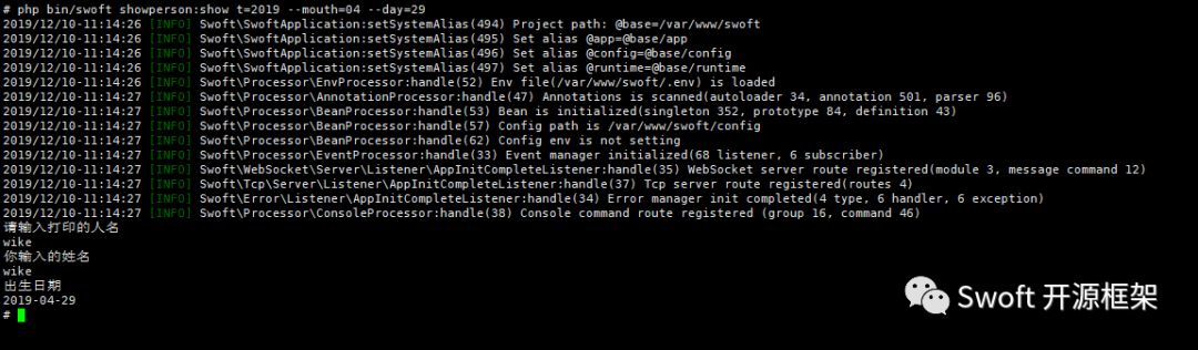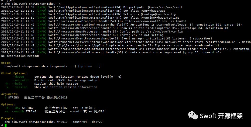 php bin/swoft showperson:show t=2019 --mouth=04 --day=29
