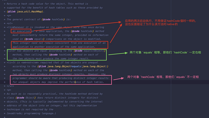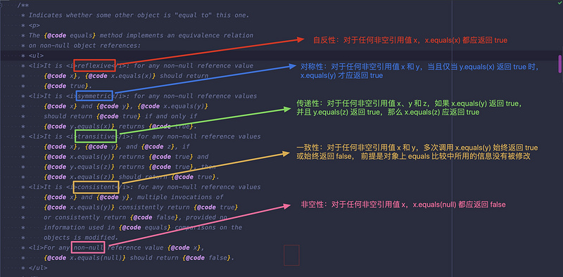 关于重写 equals 方法的约束,同样在该方法的注释中写的很清楚了,我在这里再说明一下:
