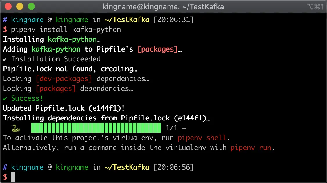 关于Kafka的第三篇文章,我们来讲讲如何使用Python读写Kafka。这一篇文章里面,我们要使用的一个第三方库叫做kafka-python。大家可以使用pip或者pipenv安装它。下面两种安装方案,任选其一即可。