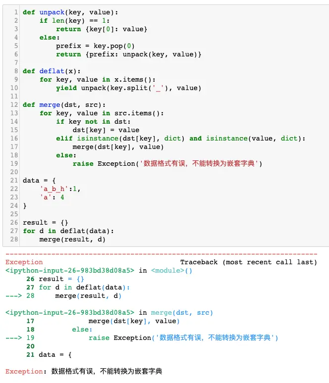 raise Exception('数据格式有误,不能转换为嵌套字典')