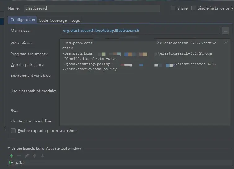 去 www.elastic.co/cn/download…下载Elasticsearch的编译版本,注意一定要同版本号的,解压后将config目录拷贝到源码目录下的home目录中 然后打开Edit Configurations,在VM options总加入如下配置