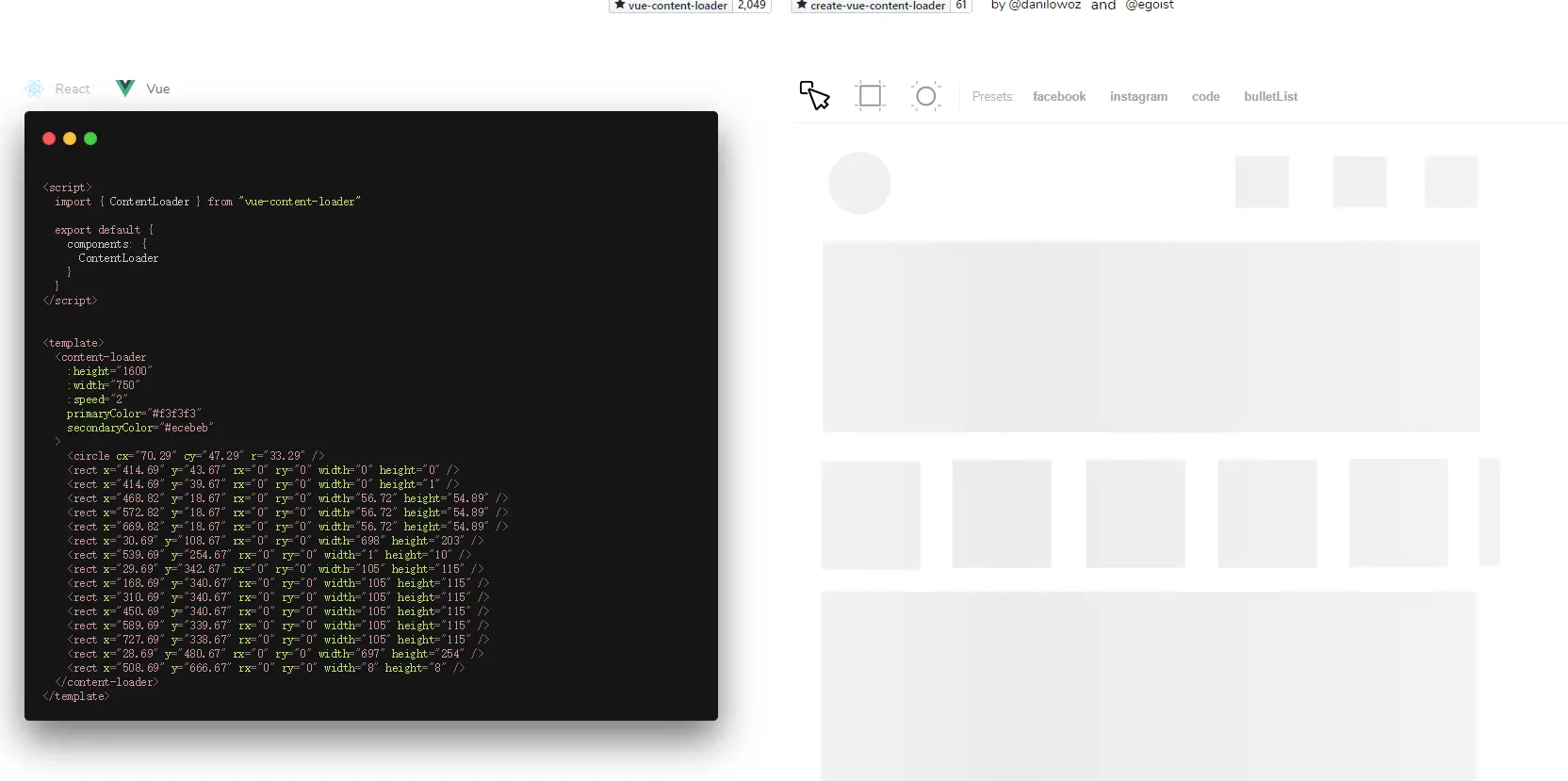 接着实验,发现使用vue-content-loader达到的效果还是不错的,于是也就确定下来方案