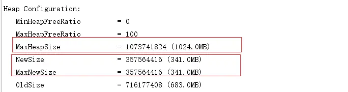 初始化堆内存:-XX:InitialHeapSize=1024m(-Xms1024m -简写) 最大堆内存:-XX:MaxHeapSize=1024m (-Xmx1024m -简写) 例如:-Xms1024m -Xmx1024m -XX:+PrintGCDetails