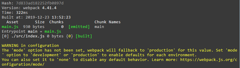 这是因为我们还没有设置打包的模式,所以webpack默认以生产(production)模式完成打包