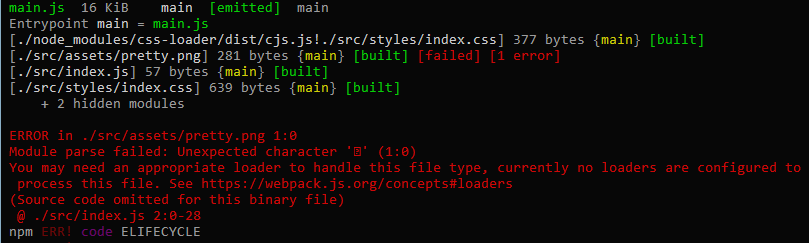 报错部分明确的告诉你'You may need an appropriate loader to handle this file type'