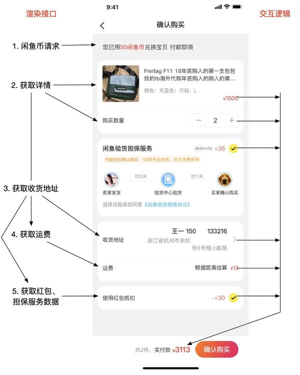 下面以闲鱼下单页一体化为例,通过页面渲染与交互两部分展开一体化实践过程。