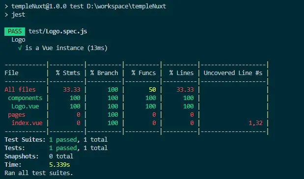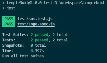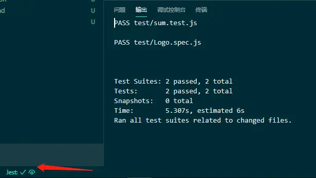 产看输入结果/npm run test,测试应运行并通过 。