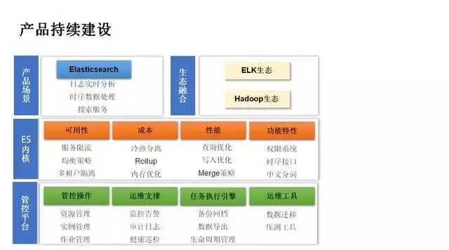 未来规划方面,这次分享我们重点介绍了腾讯在 ES 内核方面的优化实践,包含高可用、低成本、高性能等方面。此外,我们也提供了一套管控平台,支持线上集群自动化管控、运维,为腾讯云客户提供 ES 服务。但是从线上大量的运营经验分析,我们发现仍然有非常丰富、高价值的方向需要继续跟进,我们会持续继续加强对产品、内核的建设。
