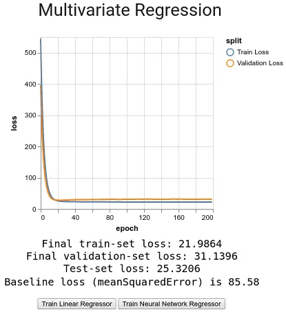如果您满怀好奇心,单击“训练神经网络回归器”,便知道”可能”更好的估计。在下一章中,我们将介绍非线性深度模型,以说明如何实现这种壮举。