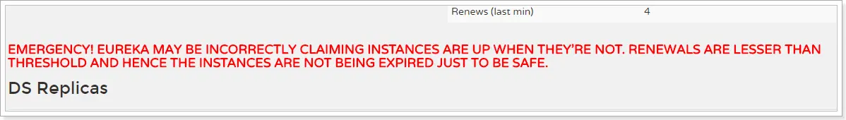 我们关停一个服务,就会在Eureka面板看到一条警告: