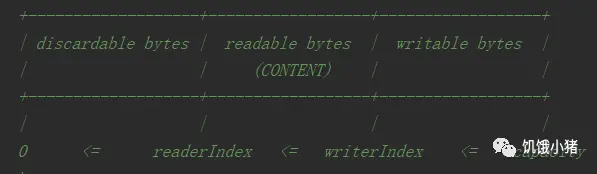 Netty ByteBuf提供了2个指针变量分别用于顺序读取,和顺序写入,readerIndex是读索引,writerIndex是写索引,二者划分ByteBuf缓冲区关系: