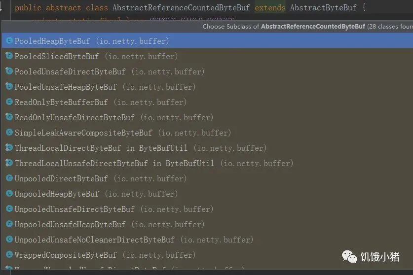 我们用AbstractByteBuf直接子类AbstractReferenceCountedByteBuf,该抽象类的子类实现的缓冲类;