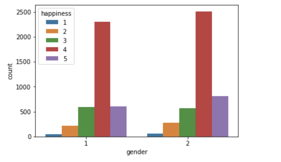 先按gender进行分组,在每个gender內按照happiness进行分组并统计。