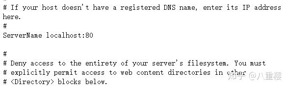 找到 #ServerName www.example.com:80改为 ServerName localhost:80