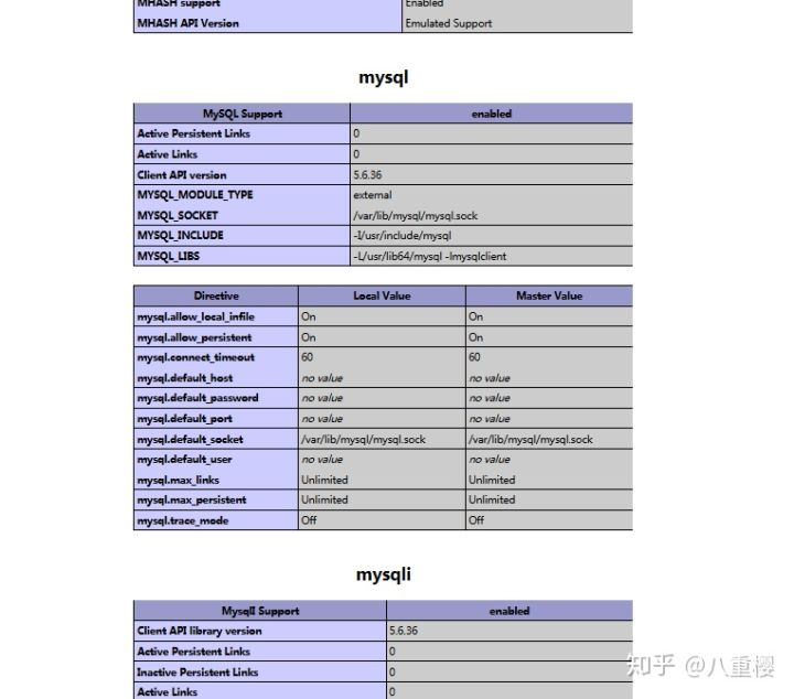 重新访问刚才的info.php,我们发现已经多了MySQL的相关信息。如右图: