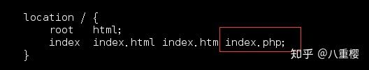 最后将位置/ {...}里替换索引后面添加上index.php,确保index.php作为替代的首页