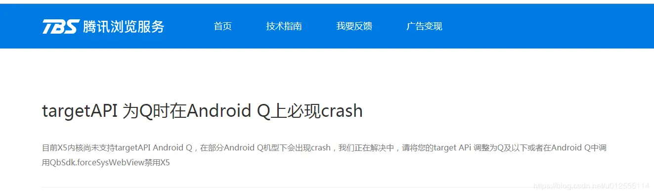 根据以上报错信息可以看出是加载webView时库不支持报错了,官方文档有2篇说明感觉自相矛盾,太坑了,一个说全量支持AndroidQ,一个却说在部分AndroidQ有必现Crash.刚开始以为是打包和加固的问题,但是换了电脑打包加固还是一样.