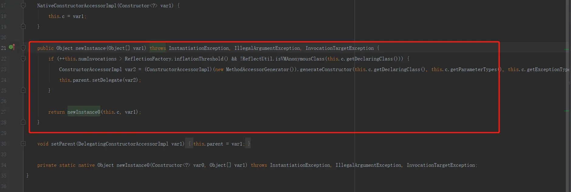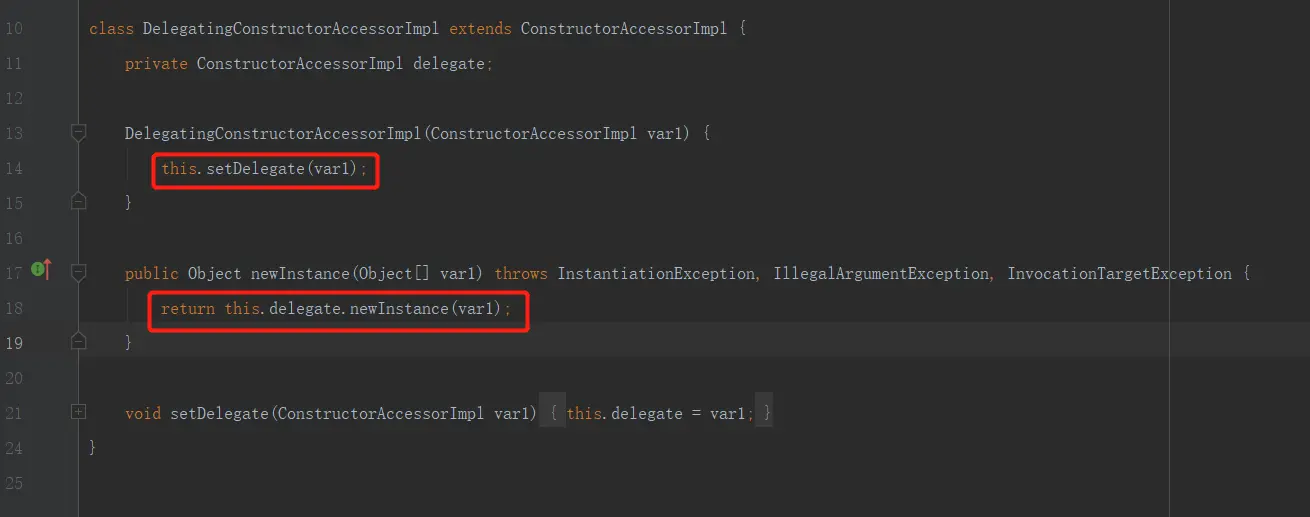 到这里还没有完事,还有一个 DelegatingConstructorAccessorImpl 方法。