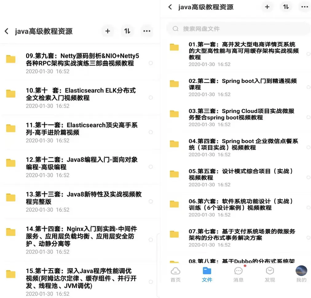 这些年整理的几十套JAVA后端开发视频教程,包含微服务,分布式,Spring Boot,Spring Cloud,设计模式,缓存,JVM调优,MYSQL,大型分布式电商项目实战等多种内容,关注Nauyus立即回复【视频教程】无套路获取。