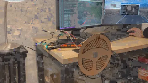 随着车道检测和转向控制完成,我们准备开始测试一些硬件!第一轮测试是将所有组件连接在一起并控制一个模拟方向盘。这主要是为了确保系统是安全的。车道检测算法目前正在一台装有NVIDIA 1080显卡的台式电脑上运行,速度约为每秒12帧。通过将树莓派(Raspberry Pi)与马达驱动帽连接到步进马达上,方向盘就完成了。