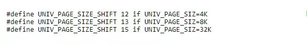 UNIV_PAGE_SIZE是数据页大小,默认的是16K,该值是可以设置必须为2的次方。对于该值可以设置成4k、8k、16k、32K、64K。同时更改了UNIV_PAGE_SIZE后需要更改UNIV_PAGE_SIZE_SHIFT 该值是2的多少次方为UNIV_PAGE_SIZE,所以设置数据页分别情况如下: