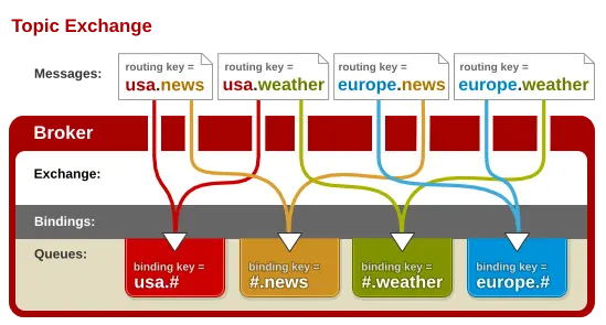 topic 主题交换机: 匹配一个或多个routing_key