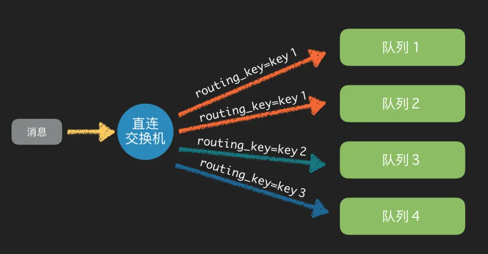 direct 直联交换机: 使用routing_key将消息发送到相应队列