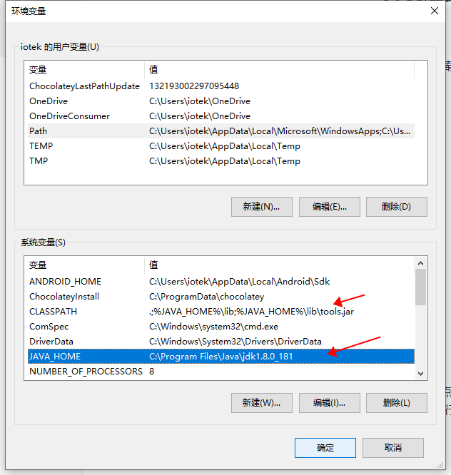 在系统变量中新建JAVA_HOME 和CLASSPATH变量,值分别为: