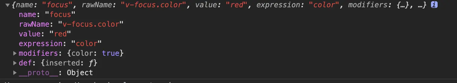 v-model.a.b.c='abc',指令名、修饰符、指令绑定属性 el代表当前指令元素bindings绑定属性vnode虚拟节点context上下文,当前指令所在的上下文(一般为this)- 指令钩子函数,