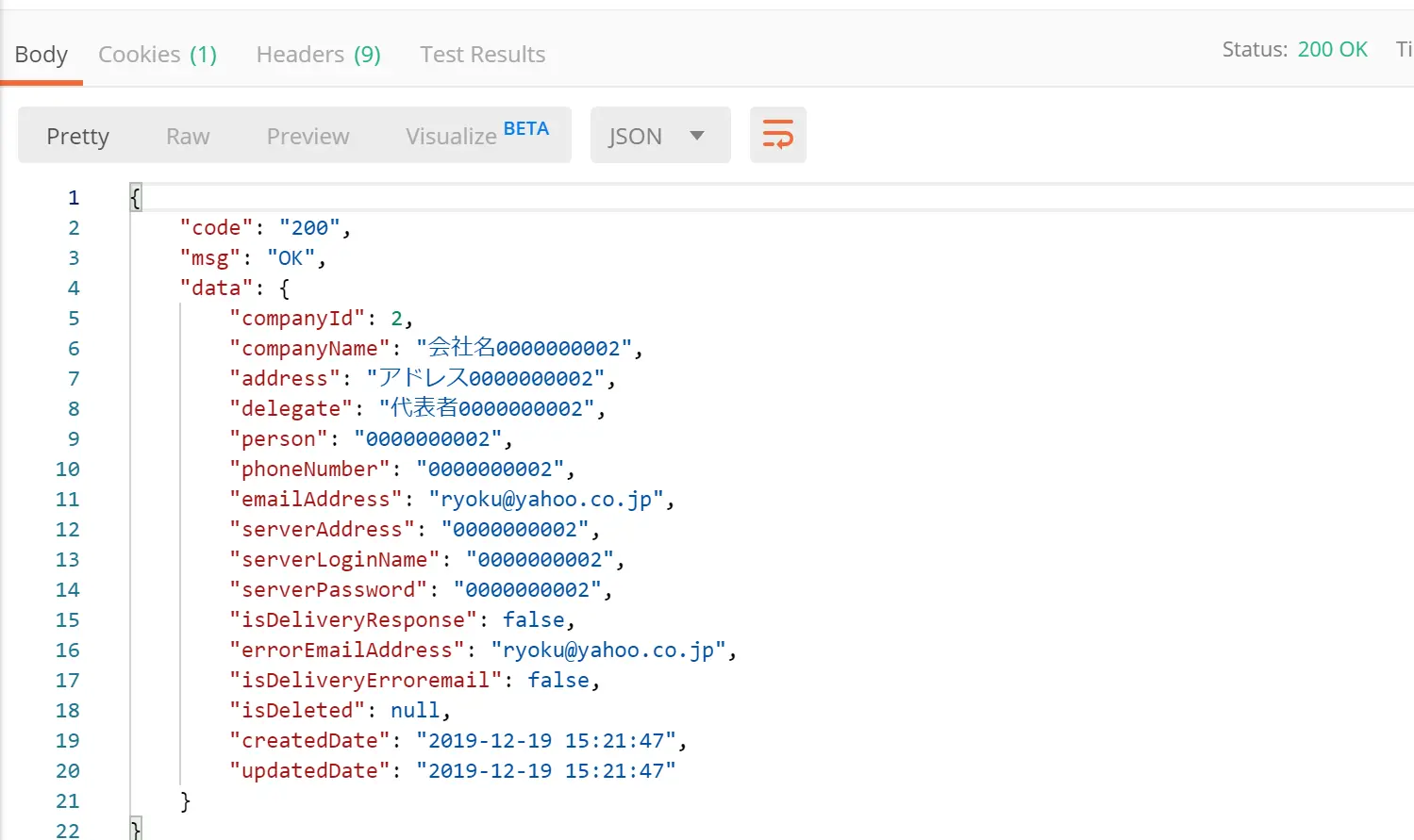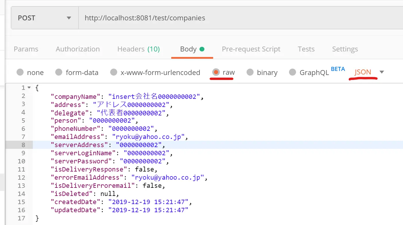 那么我们走一遍增删改查。通过以下例子可以看出,不管增删改查,URI都是http://localhost:8081/test/companies/。这样对你的程序设计,维护,文档设计,维护都很有帮助。