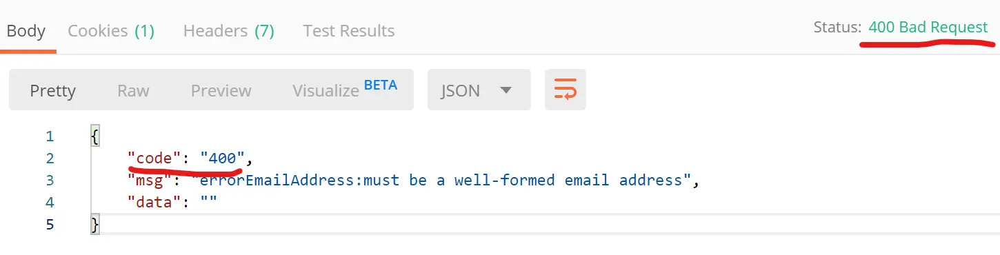 像下面这样,我们返回ResponseEntity,并与HttpStatus关联,当然可以是400,404,500。ResponseDto中你可以放同样的code,也可以是你自己自定义的错误码。这里我们为了方便就设置成同样的。