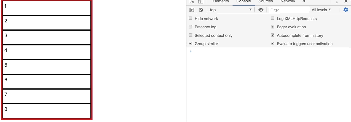 总的来说,我实现的这个还是有很多瑕疵的,比如说我是滚动的时候直接将视口内所有的li先清空,然后再对它们进行定位,而花瓣网上是删除前面的,再添加后面的,很智能。总之,想完善这种虚拟化列表,还是很复杂的。