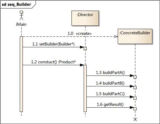 - ConcreteBuilder是Builder的实现关系