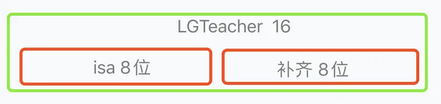 那么如果LGTeacher有成员: NString *name; Int age; char sym; long heiht; 那么LGTeacher的对齐方式如图所示
