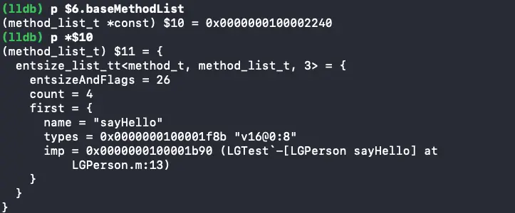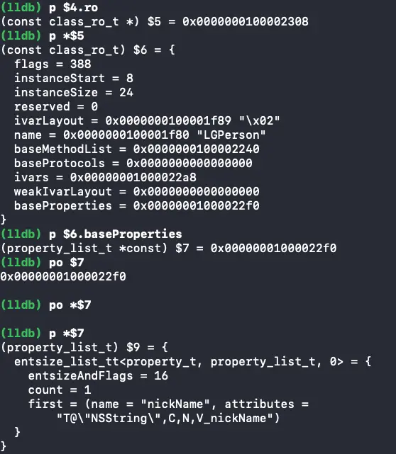 - 同样我们也可以从class_rw_t *data()方法返回这些信息。