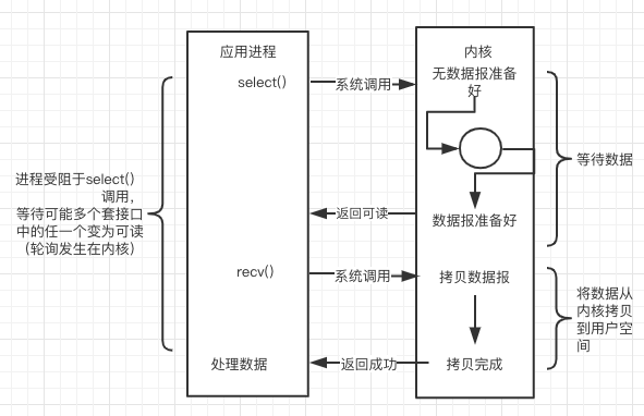 - 将数据从内核拷贝到进程中(CPU闲置)。