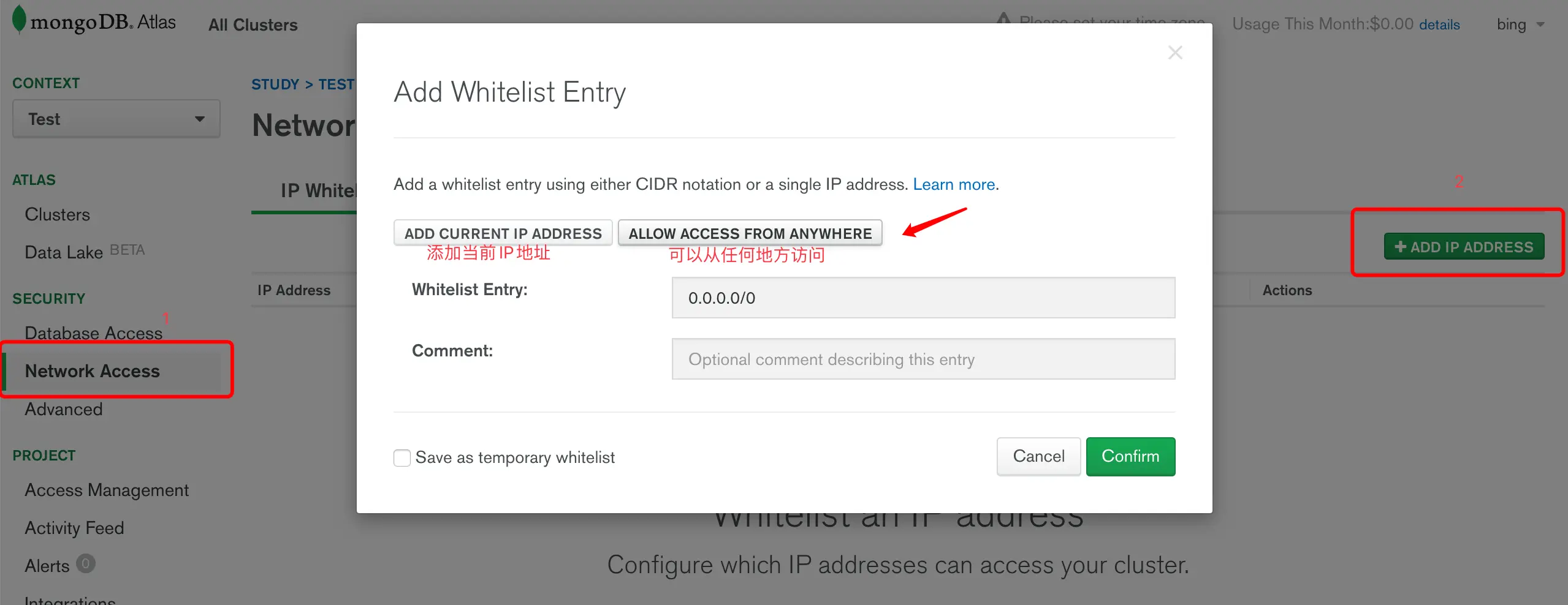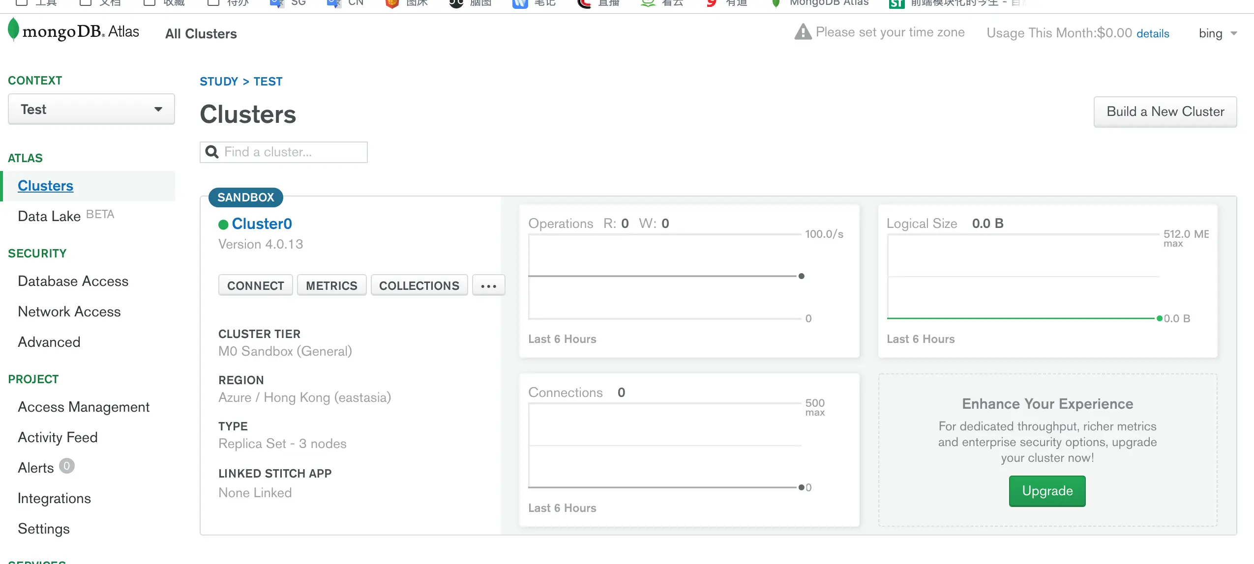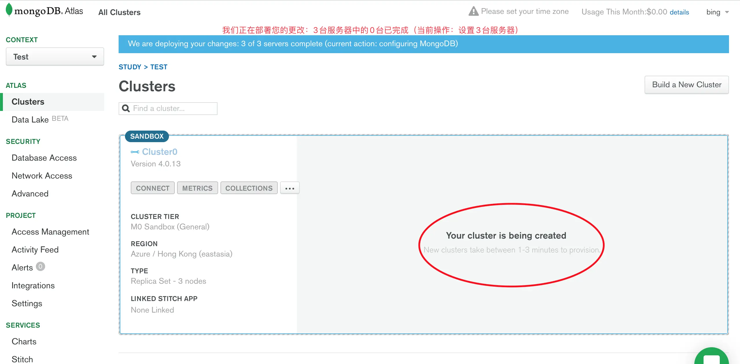 使用 Atlas 的的缺点:最大的缺点就是有点慢!毕竟服务器在国外。其次只能创建一个集群,这个到无所谓,作为学习使用一个集群就够了,毕竟一个集群中可以创建N个数据库啊。
