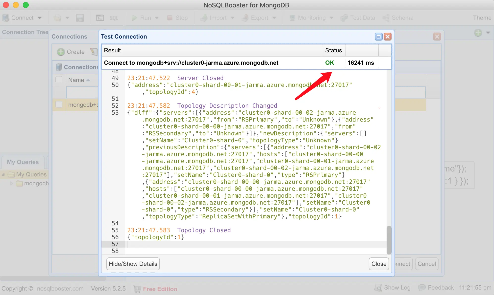 然后点击 Test Connection 按钮进行连接测试,出现如下情况即连接成功!