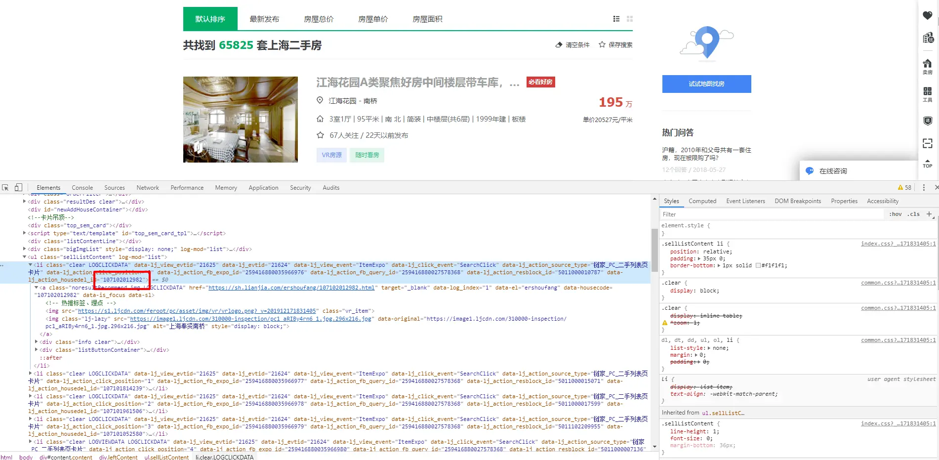 顺便再看下详情页的链接:https://sh.lianjia.com/ershoufang/107102012982.html 。