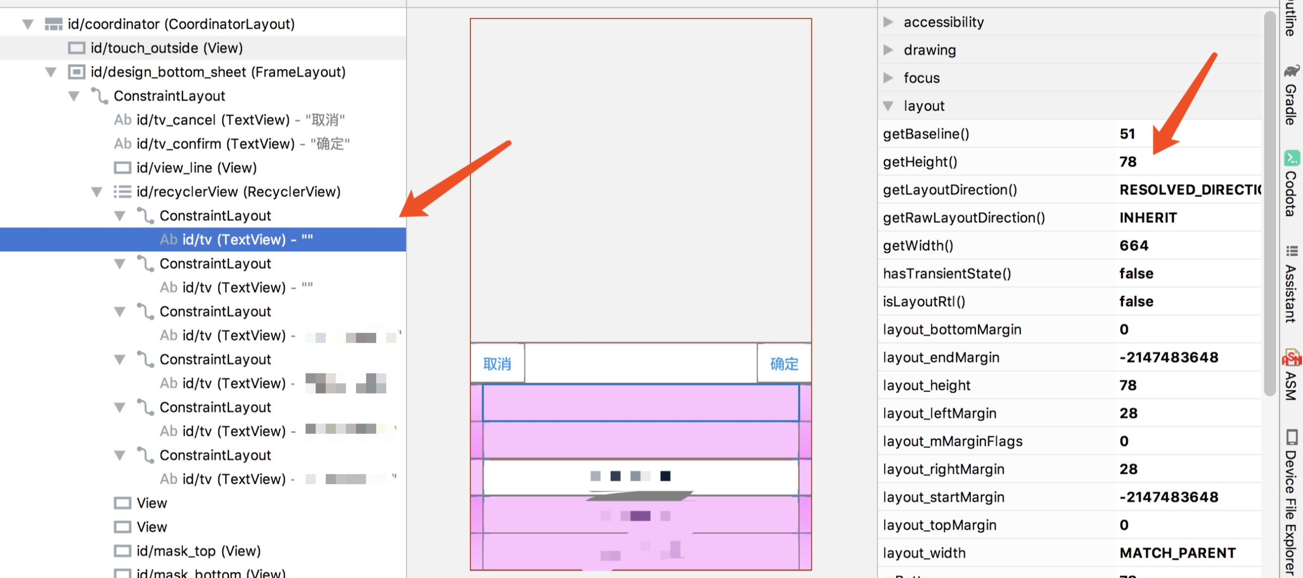 我们发现低版本手机上,RecyclerView的实际高度比5个item高度总和多了一像素(391 - (78 * 5) = 1 ),导致屏幕上实际显示了6个item。