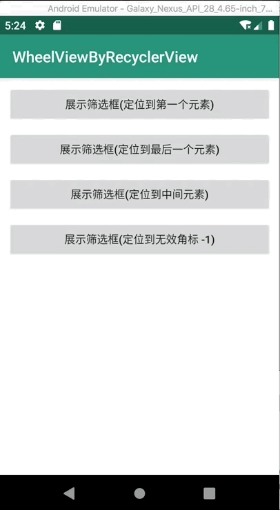 使用RecyclerView实现了一个类似WheelView的效果,这里RecyclerView的高度是5个item的高度。大致效果如下图所示:
