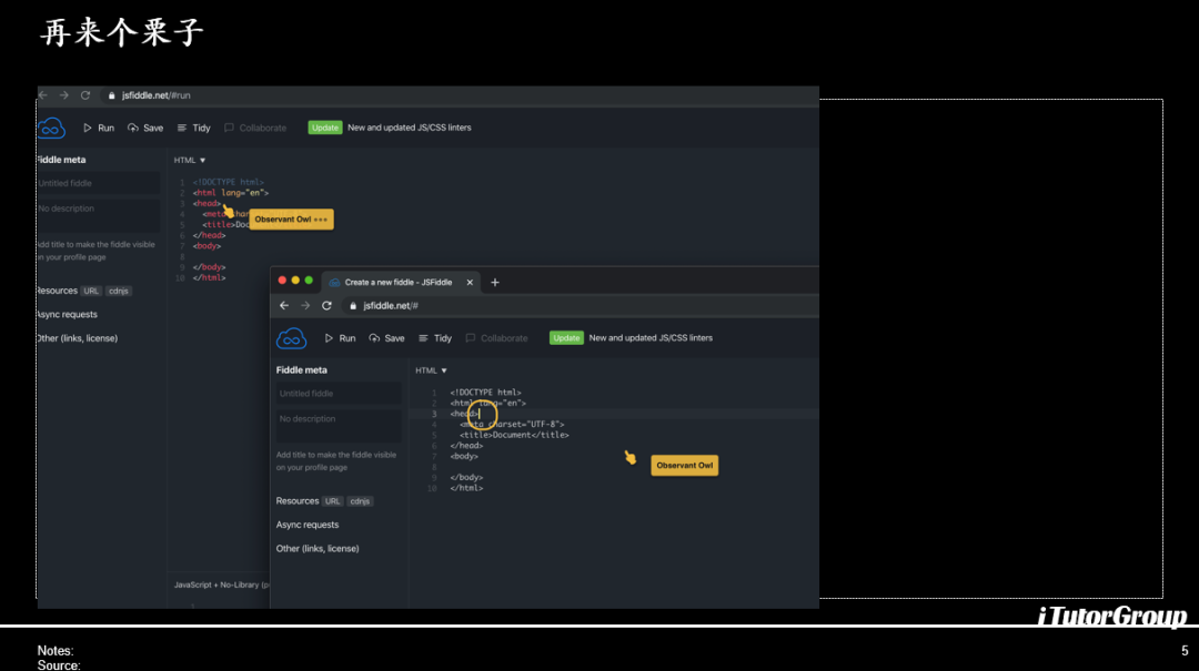 简单描述就是这样的,比如说大家在一个IDE里面编写代码,你的编写的内容会同步传输到另外一个人的网页端,并且你可以使用编译结果同时广播到两个地方,大家都可以看到你的编译的结果,那这个是最基本的协同方式,原理上也很简单,传递的只是在你的浏览器中改动,这个是最基本的应用。