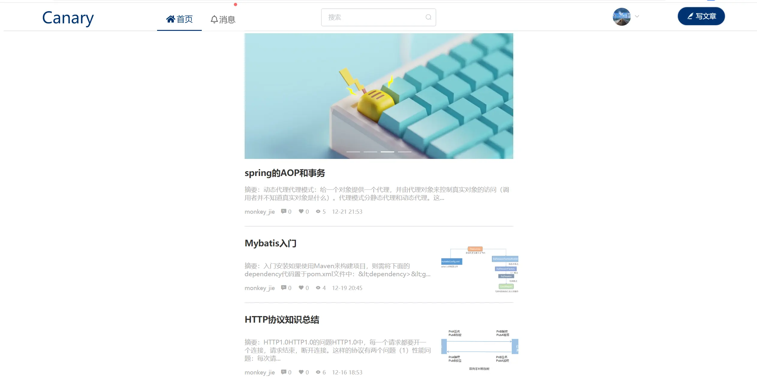 写这个博客系统的初衷是为了给那些不愿自己维护一个个人博客,但又觉得市面主流博客网站广告多、不够简洁等。所以我写这个系统的时候也是尽力让它尽量的简洁,但又带一点个人风格。目前自定义主题功能还没上线,过段时间我将会加上他,让使用者可以自己DIY自己的主页。取名为Canary,中文名也就是金丝雀,目的是想把它做得很漂亮,吸引人,让更多的人来使用它(项目一直在不断的改进中)。