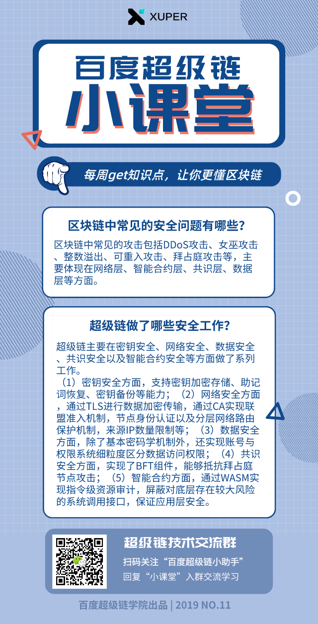 #从区块链小白成为技术大咖,你只差一个区块链小课堂# 百度超级链 2019-12-25 116 阅读1分钟 区块链可能常常会面临DDoS攻击、女巫攻击、整数溢出等安全问题,怎么破? 百度超级链采用完全自研的技术,针对密钥安全、网络安全、数据安全、共识安全及智能合约安全等采取了相应措施,为开发者提供值得信赖的研发环境。 详情戳图查看~