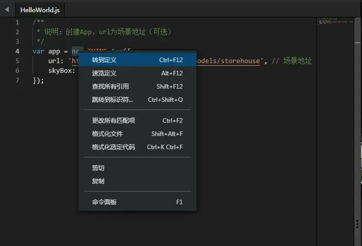帮助:提供了快捷键的详细介绍以及ThingJS平台其他相关页面的快捷入口。详细介绍请参照 在线开发 - 菜单导航 - 帮助。