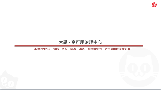 - 在最上层,是我们的产品层,高可用治理中心目前提供出了恶意流量探测、演练、限流、熔断、降级的产品,同时,为了达到策略上线效率的最大化,我们还提供了可自定义规则的模块,我们将一条策略抽象为以断言、条件判断和处理三个组件为核心的一个表达式,这样就可以在无需前端任何产品级别开发的前提下完成策略的快速上线。同时你可以基于我们原子的策略组件的自由拼装,来实现你想要的自定义的策略能力。