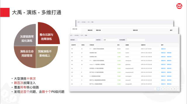 同时,我们知道,为了尽量降低风险,一般的演练都会放到晚上高峰期之后再进行。所以针对这种情况,我们也实现了在灰度链路上进行演练,以此来大幅削减演练的成本。两年以来,我们累计进行十余次大型演练,发现了超百个问题,包含数十个致命级别的问题。这说明,我们的演练事实上发挥了非常关键的作用。
