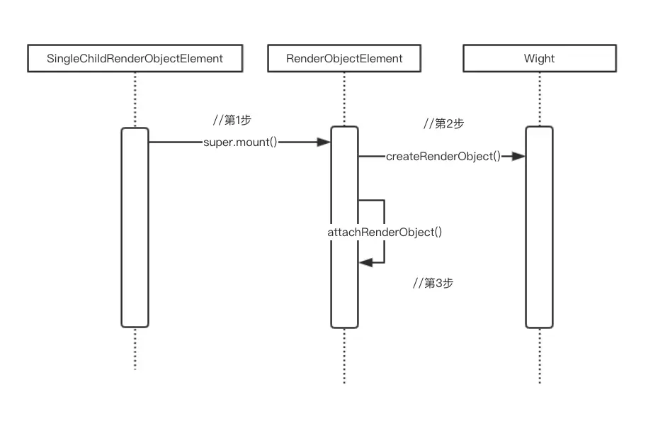 - 当SingleChildRenderObjectElement被SingleChildRenderObjectWidget创建成功之后,系统会调用SingleChildRenderObjectElement的mount(),这个方法首先调用super.mount(),也就是上图的第一步。
