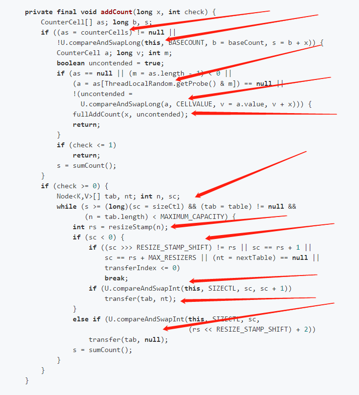 - 调用 addCount 记录其容量,如果满足扩容条件需要对其进行扩容